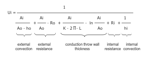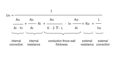 The global coefficient of heat transmission referred to the area outside the inner tube, U0, has the expression:
